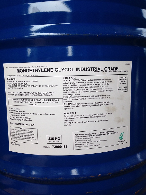 Monoethylene glycol is a chemical substance that is produced by the reaction of ethylene or ethylene oxide. It is used as a corrosion inhibitor in antifreeze and in coolants, and in the manufacturing of polyester.